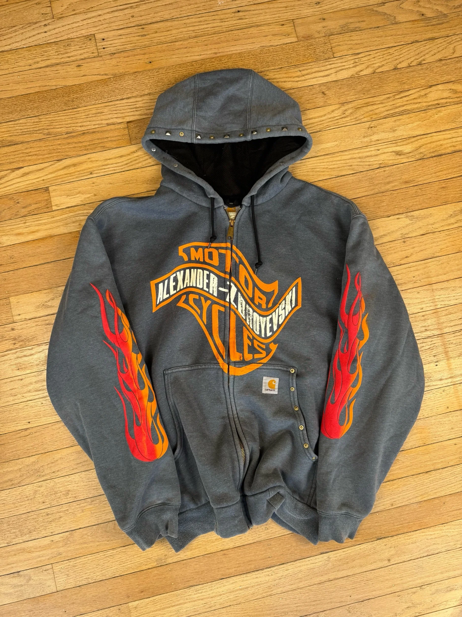 Vintage waffle lined Carhartt jacket with multiple puffed screen prints