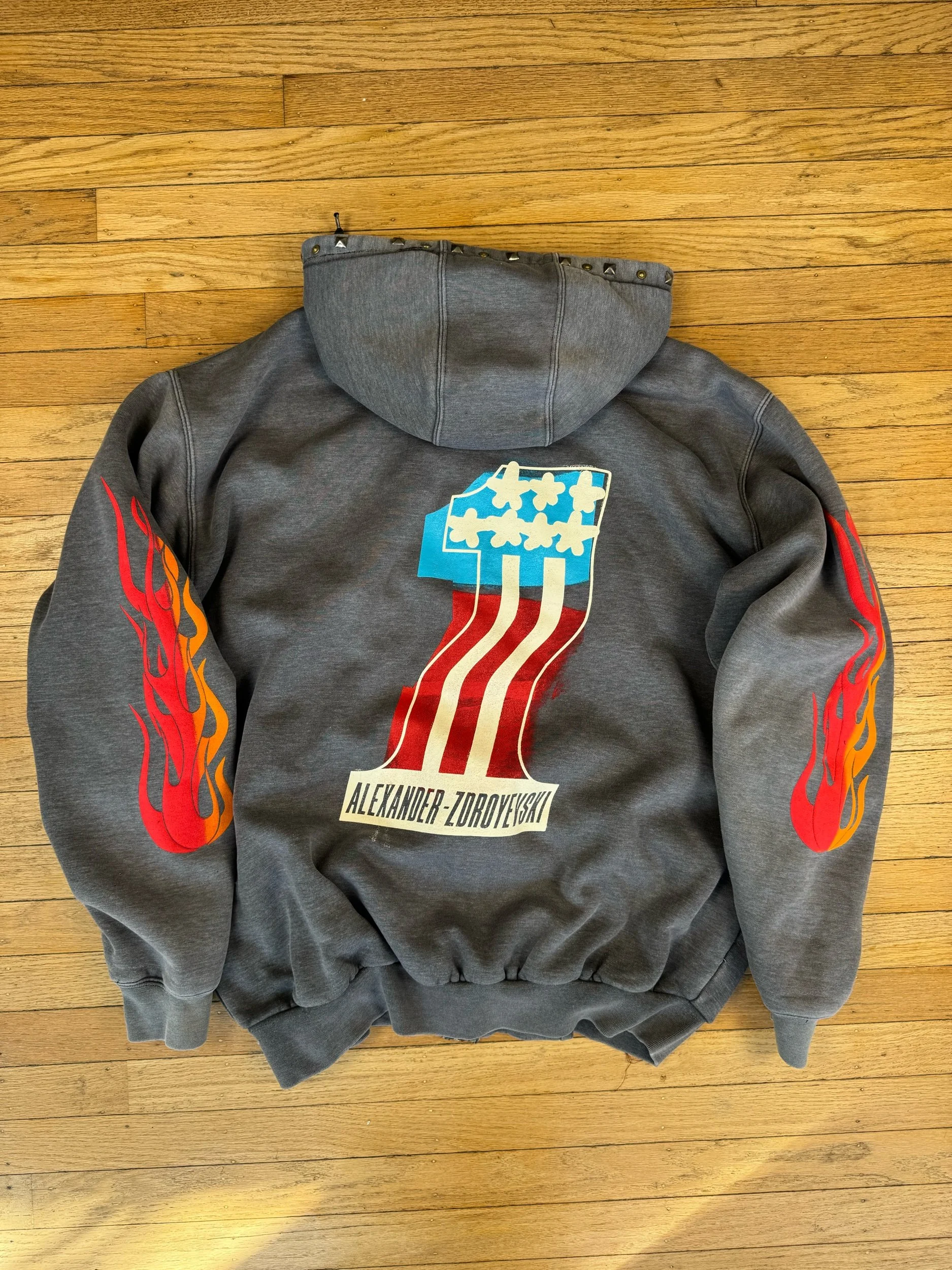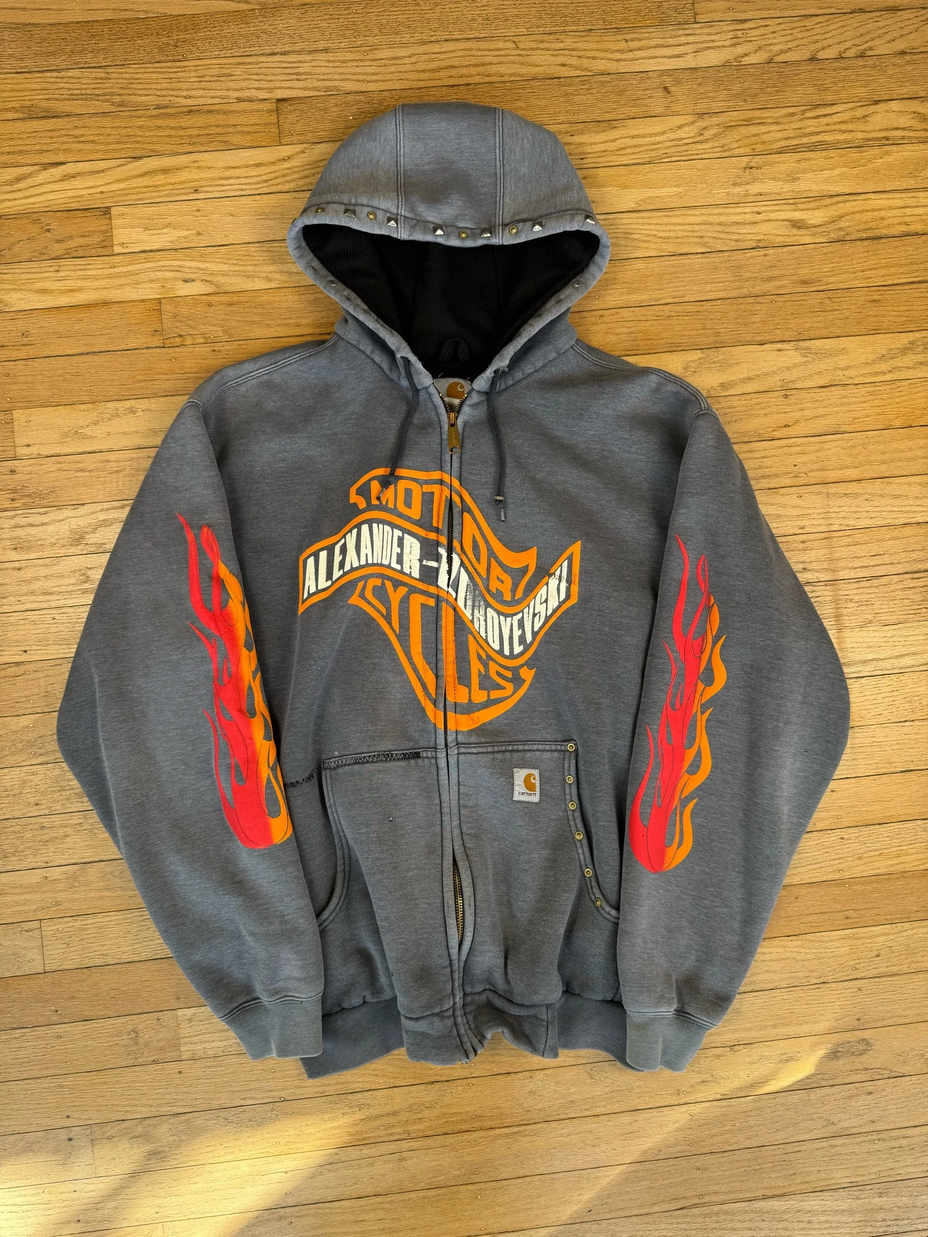 Vintage waffle lined Carhartt jacket with multiple puffed screen prints