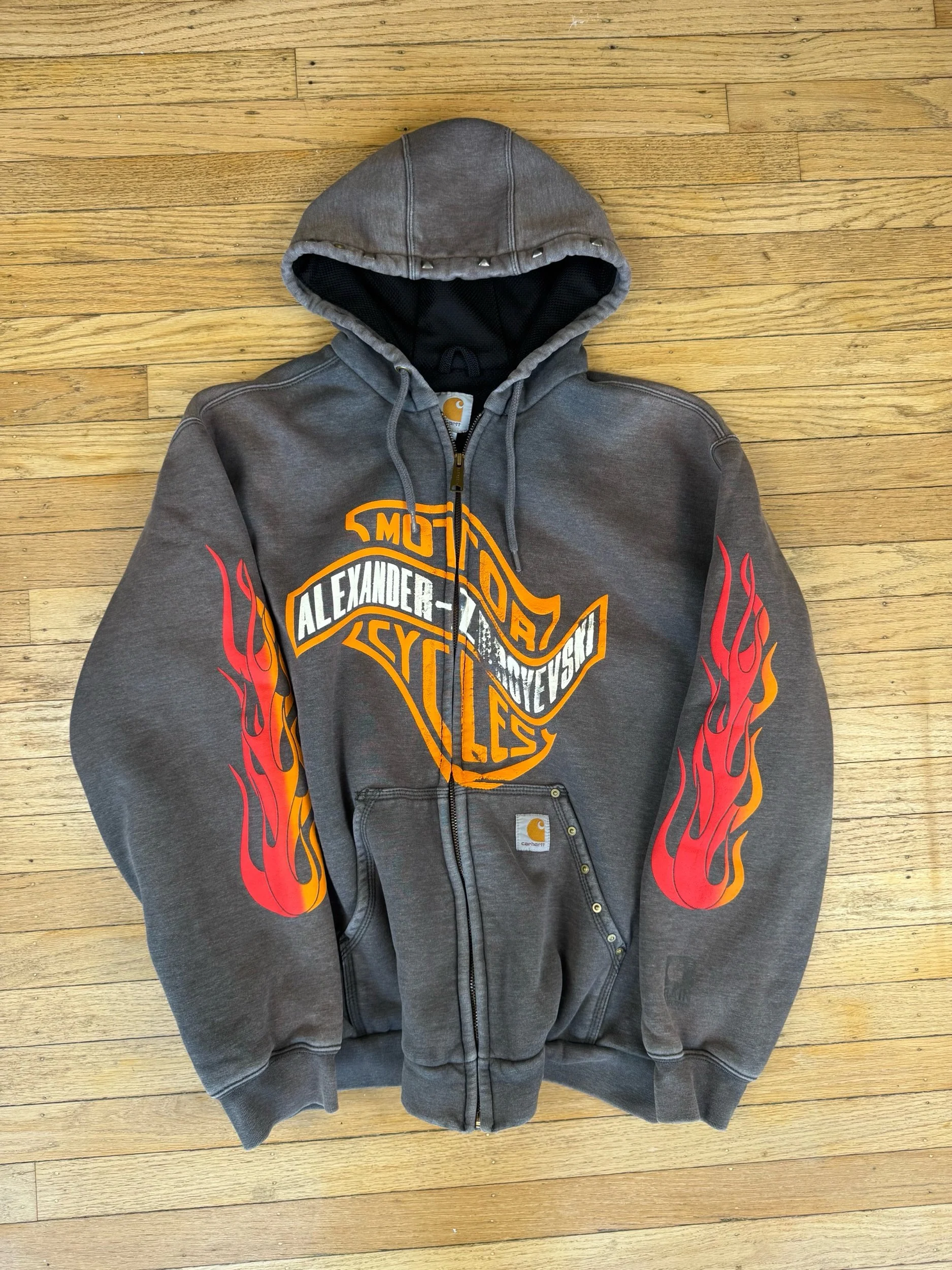 Vintage waffle lined Carhartt jacket with multiple puffed screen prints